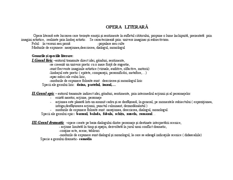Genul epic include totalitatea literaturii de tip narativ având ca moduri de expunere dominante naraţiunea şi descrierea dar şi dialogul şi monologul. Schita povestirea nuvela romanul fabula balada. Concepte operationale figuri de stil epitetul partea de vorbire sau de fraza care determina in lucrarile sau actiunile exprimate printr un substantiv sau verb insusirile lor estetice adica acelea care pun in lumina felul cum le vede sau cum le simte scriitorul si care au un rasunet in sensibilitatea si. Plan de argumentare a apartenentei unui text la genul epic.