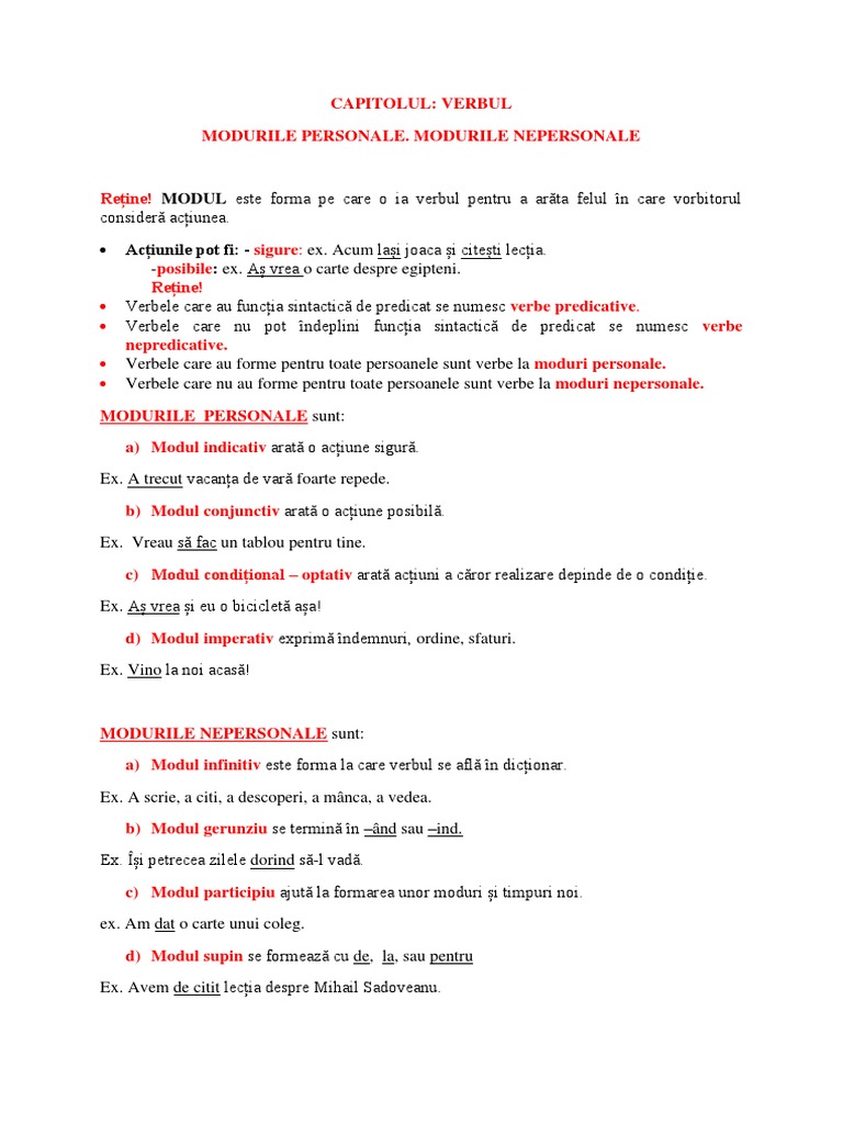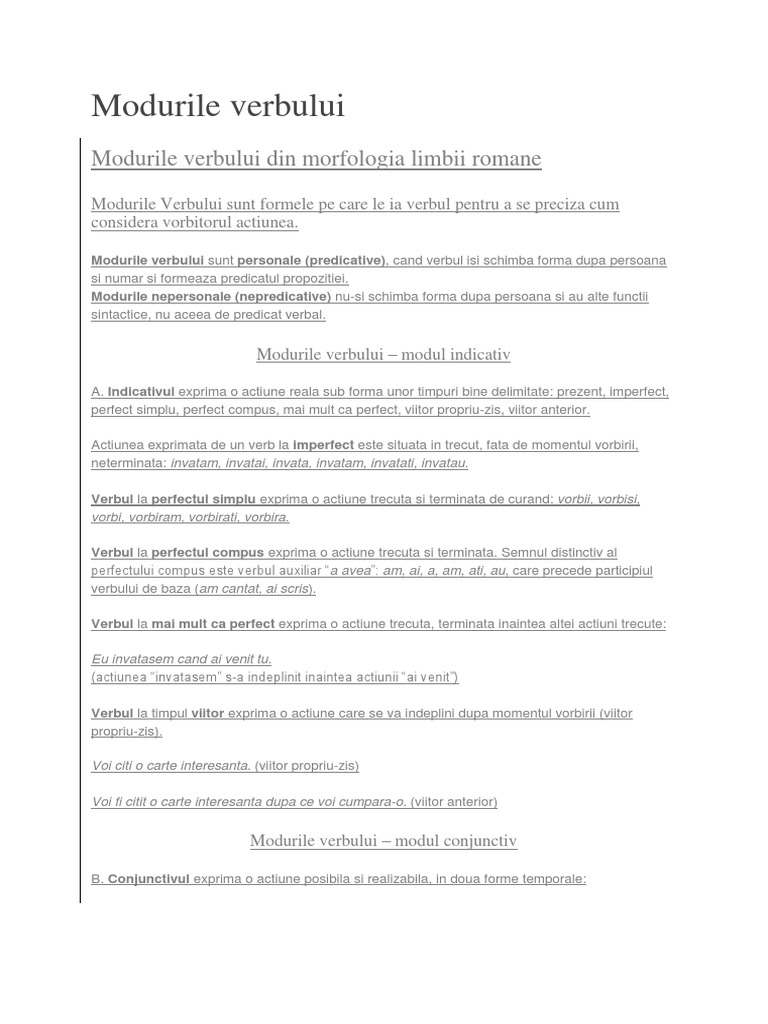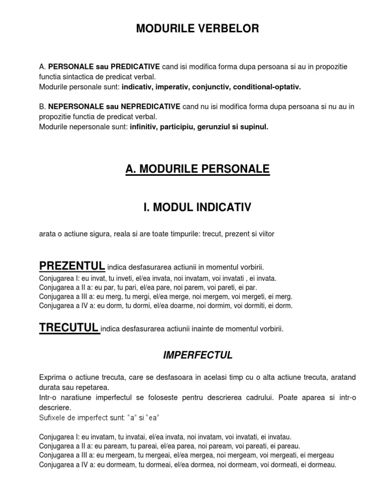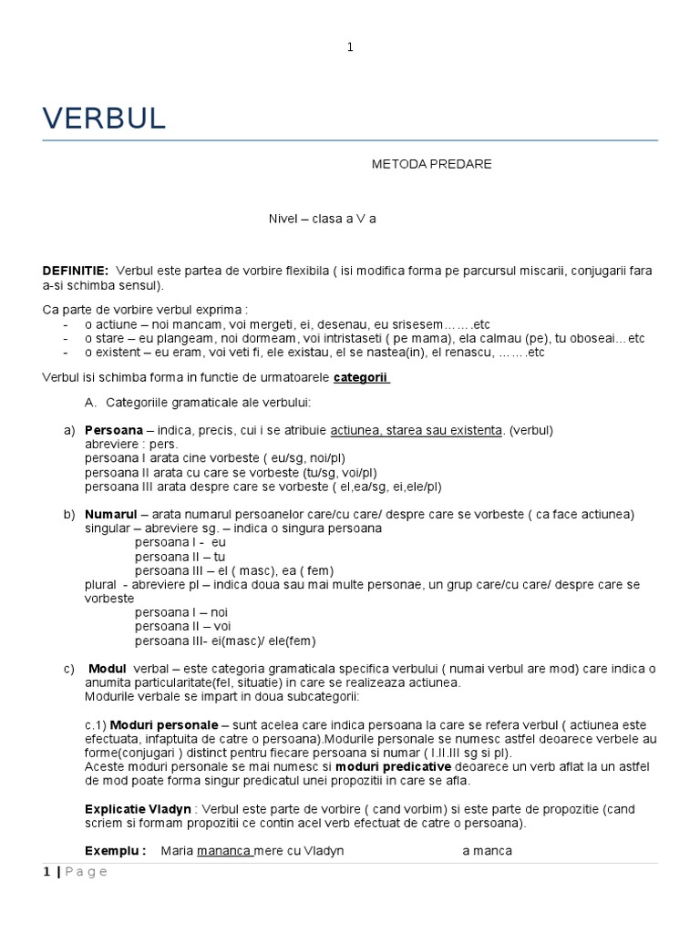 Doc Verbul Clasa 5 Moduri Si Timpuri Mărioara Moti Academia Edu