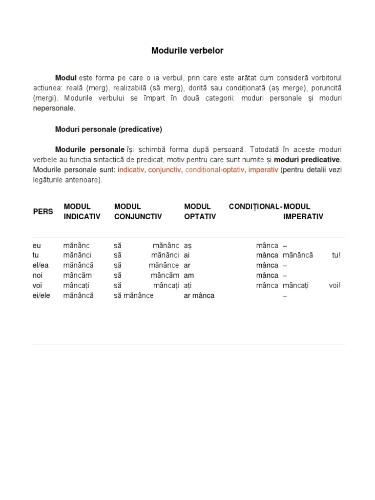 Verbe Personale Modurile Personale Iși Schimbă Forma După Persoană In Modurile Personale Verbele Au Funcția Sintactică De Predicat Motiv Pentru Care Sunt Num