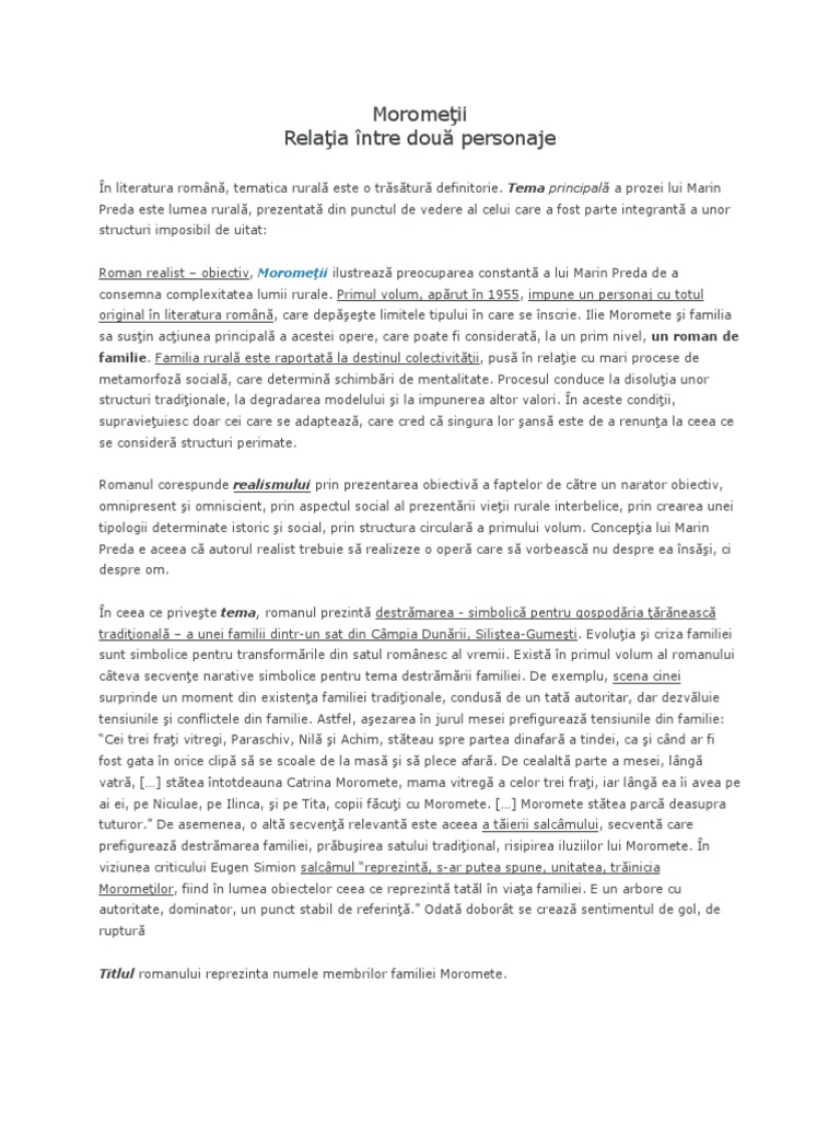 Doc Moromeţii De Marin Preda Marcel Boscanean Academia Edu