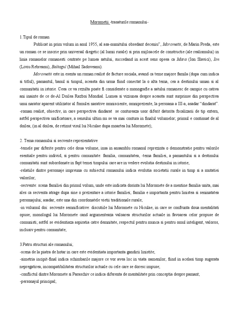 Roman Postbelic Temă Si Viziune Dspre Lume Intr Un Roman Postbelic Moromeţii De Marin Preda