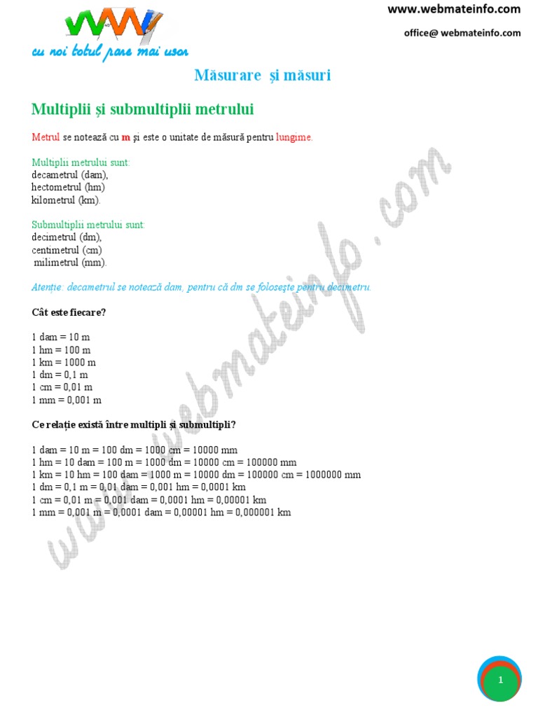 Metrul Multiplii și Submultiplii Metrului Matematică Clasa A Iii A Youtube