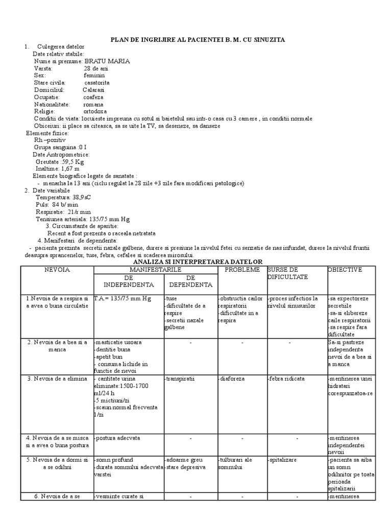 Tabel Nevoi Model Pt Plan De Ingrijire