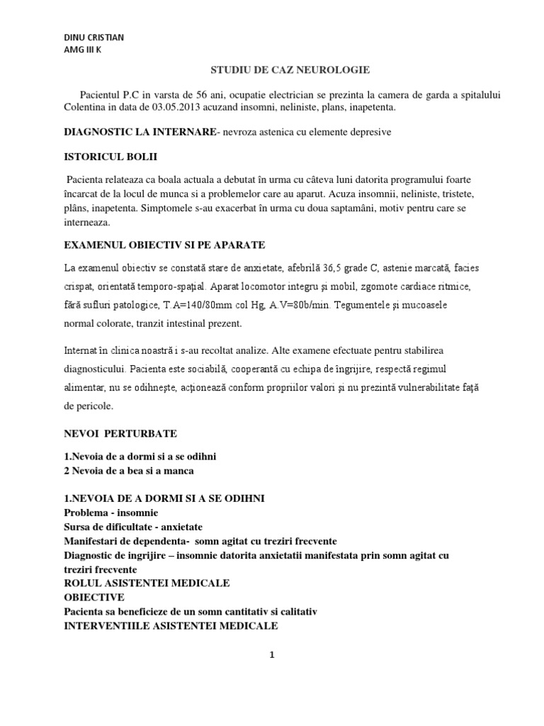 Studiu De Caz Neurologie Dinu Cristian Amg Iii K
